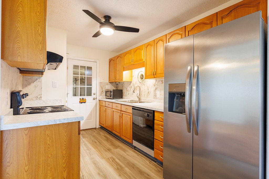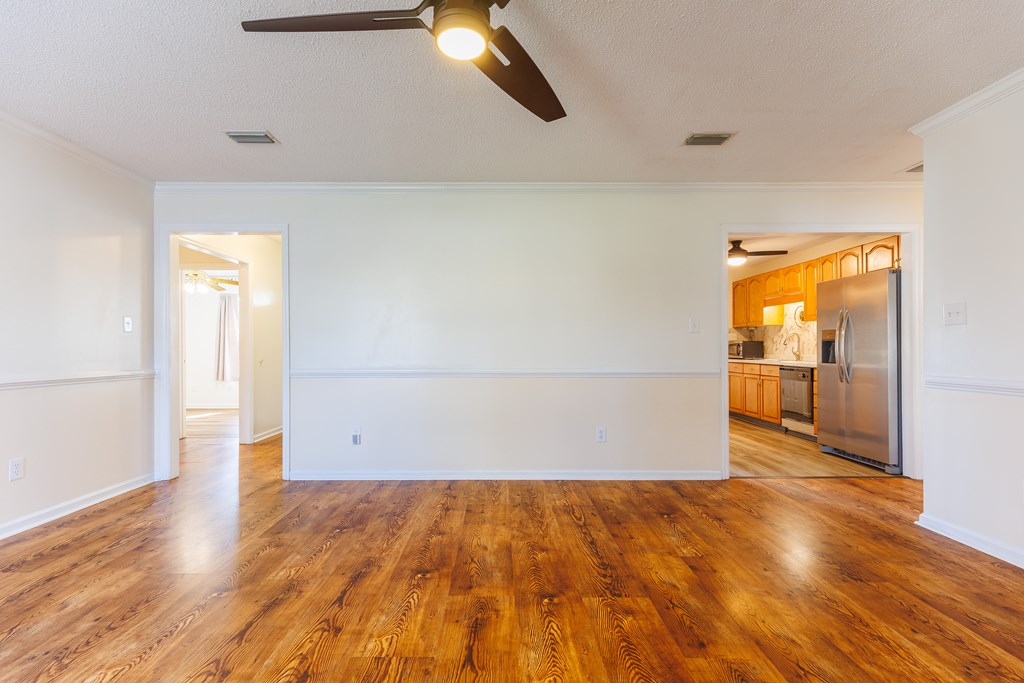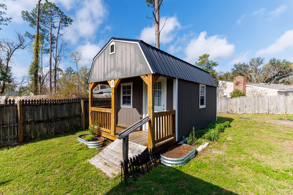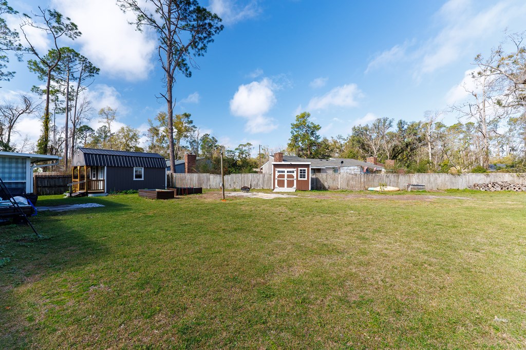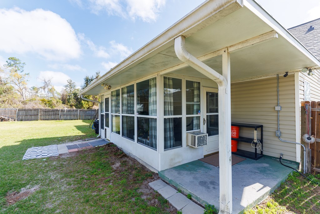 Welcome home to this beautifully updated 4 bedroom, 2 bathroom home in Valdosta, Georgia, offering stylish upgrades and functional living spaces throughout. From the moment you arrive, you'll appreciate the inviting curb appeal featuring a covered front porch, two-car garage, and well-maintained landscaping. Step inside to a welcoming foyer that opens into a formal dining room, complete with chair rail trim and wallpaper border detailing that continues seamlessly into the kitchen area. The kitchen is both functional and charming, featuring all-wood cabinetry, tiled backsplash, pantry, and brand-new appliances including a refrigerator and stove (both installed in 2025). Just off the main living space, you'll find two spacious bedrooms with great closet space, along with a well-appointed guest bathroom and convenient linen closet. Moving into the living room, beautiful chair rail detailing, LVP flooring, and a cozy wood-burning fireplace create a warm and inviting space perfect for relaxing or entertaining. On the opposite side of the home are two additional bedrooms, including the primary suite featuring double closets and access to a Jack-and-Jill bathroom, while the additional bedroom offers a large walk-in closet. Through the living room, step into a bright and airy sunroom complete with its own AC unit, creating the perfect space to enjoy year-round natural light. The large two-car garage includes a laundry room, and the washer and dryer remain with the home (both just 4 years old). Out back, the fully fenced yard is ready for hobbies, gardening, and outdoor enjoyment. You'll find citrus trees, raised garden beds, and a double gate for easy access, along with an impressive double-wired workshop with loft and fan (installed in 2024 & 2025) ideal for projects, storage, or a workspace.