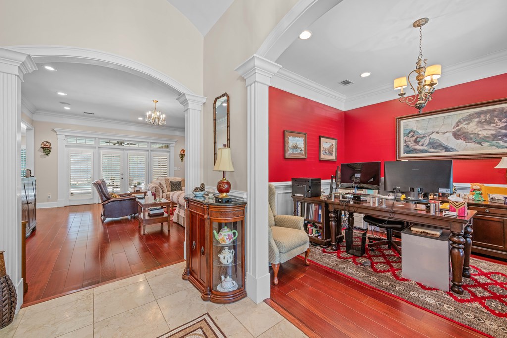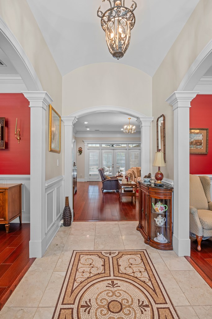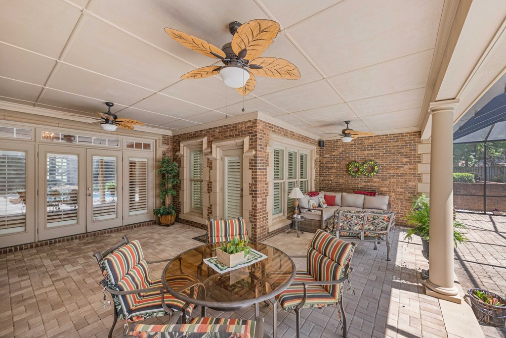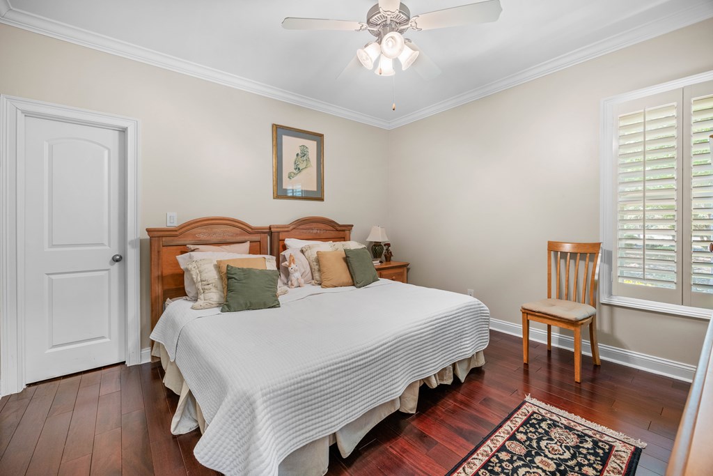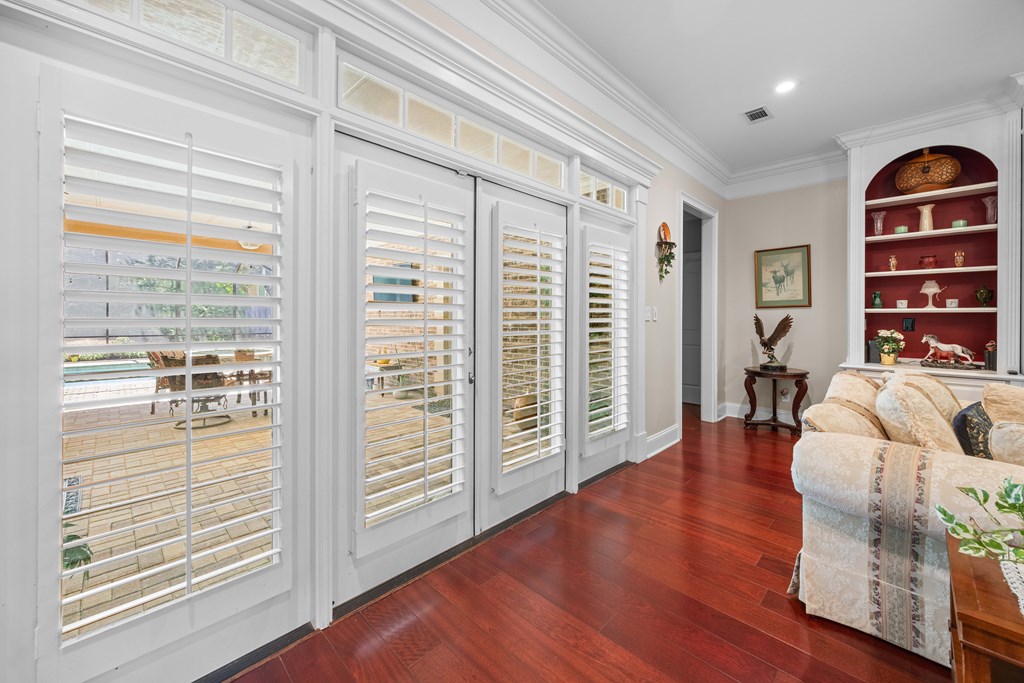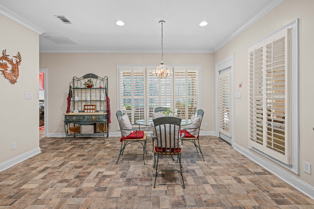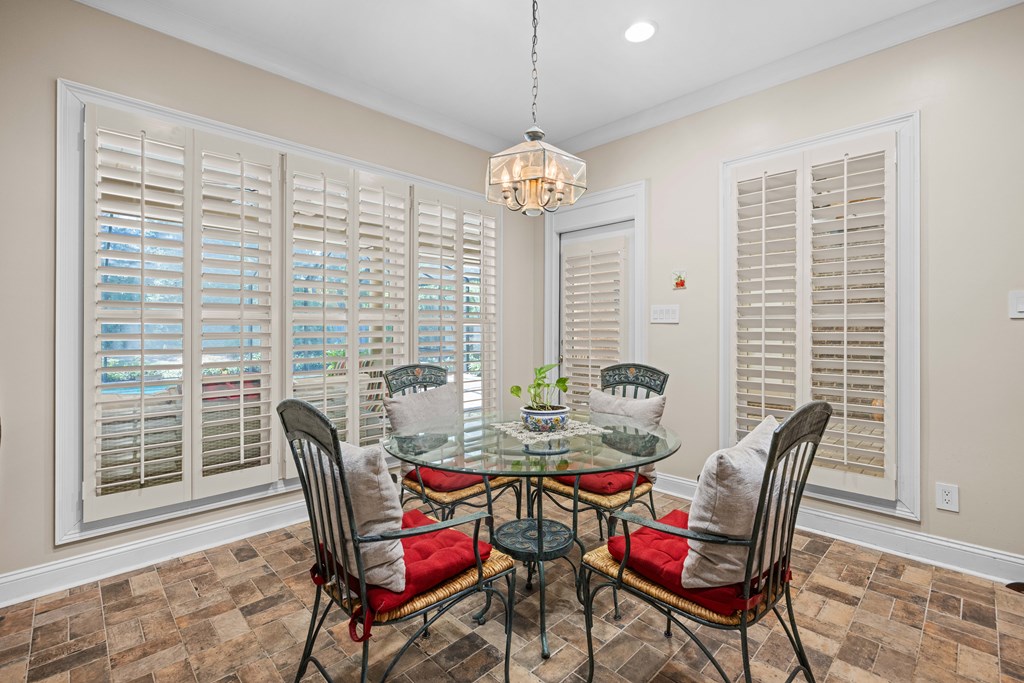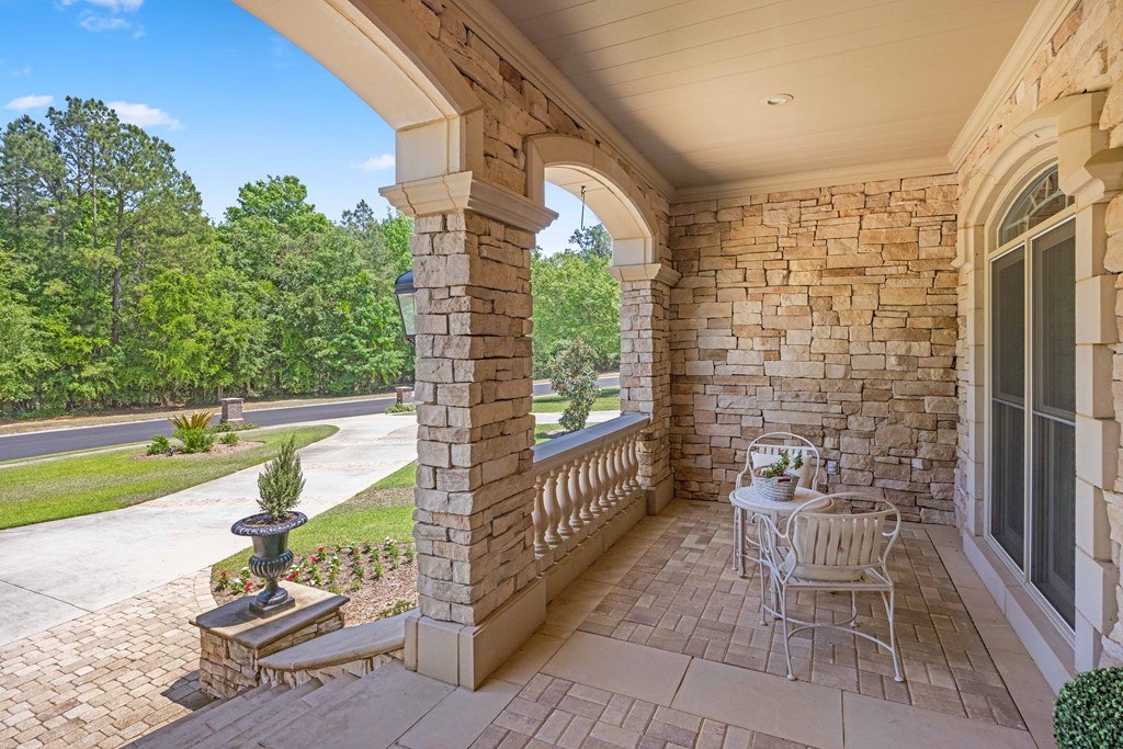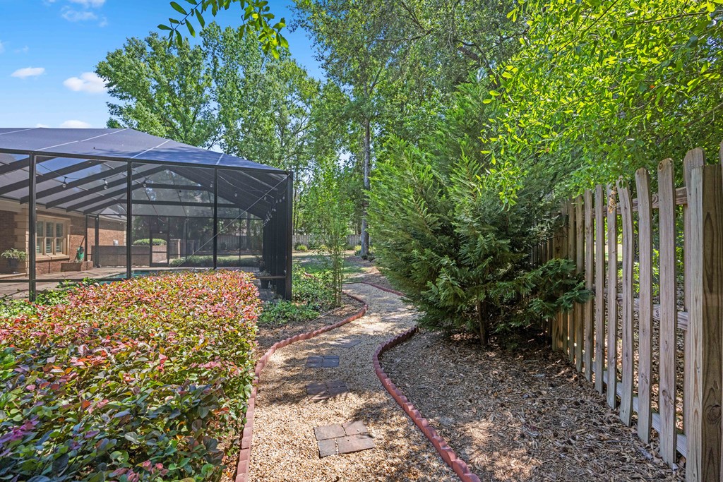 Discover a rare opportunity to own a truly exceptional all-brick home in Kinderlou Forest, South Georgia's premier golf and lifestyle community. Showcasing masterful masonry and architectural detail that is increasingly hard to find, this residence offers a level of craftsmanship and character that sets it apart. From the moment you arrive, you're welcomed by a grand circular drive, a spacious, beautifully landscaped lot with mature plantings, and a stately brick fence that enhances both curb appeal and privacy. A generous three-car garage and meticulously maintained exterior reflect the pride of ownership evident throughout the property. Inside, rich hardwood floors, elegant finishes, and thoughtfully curated pops of color create a warm yet sophisticated atmosphere. The home's layout offers both comfort and functionality, ideal for everyday living and entertaining alike. Step into the backyard and experience a true private retreat - an inviting patio space that feels like an escape from the everyday. Whether hosting guests or enjoying a quiet afternoon, the setting is serene and shaded. The saltwater pool and hot tub, complemented by a newly installed pool enclosure, provide the perfect centerpiece, surrounded by fragrant seasonal and perennial gardens. Kinderlou Forest is a 24-gated community that features championship private golf, dining, pickleball and tennis courts, two work out facilities, lake and river access, walking trails, and much more!