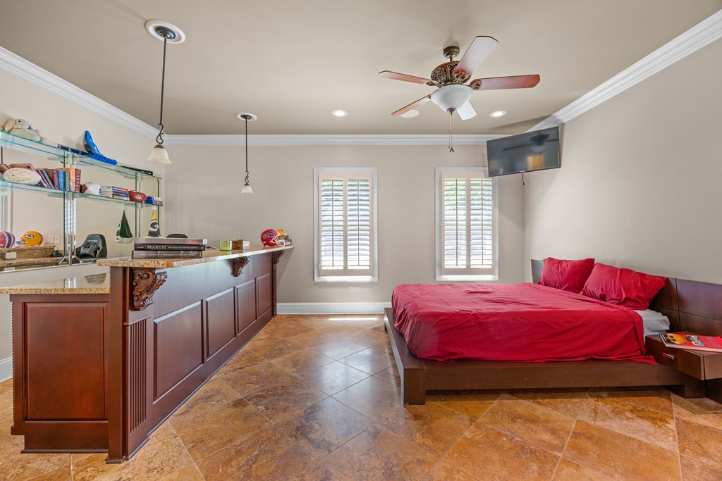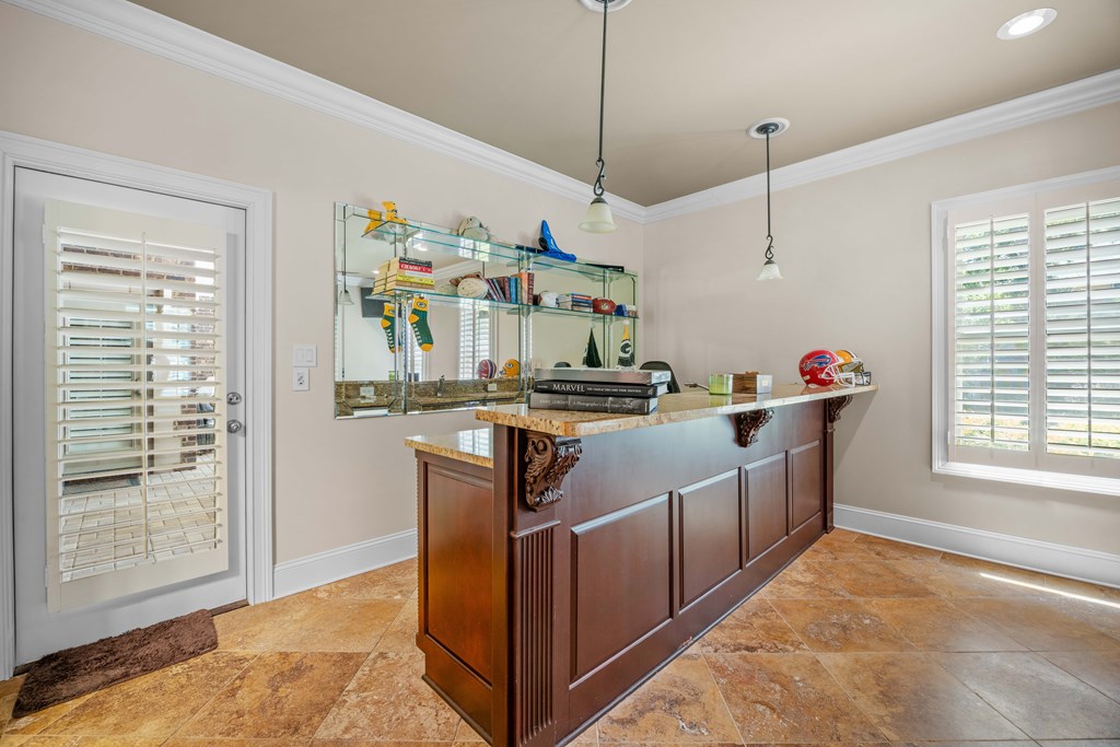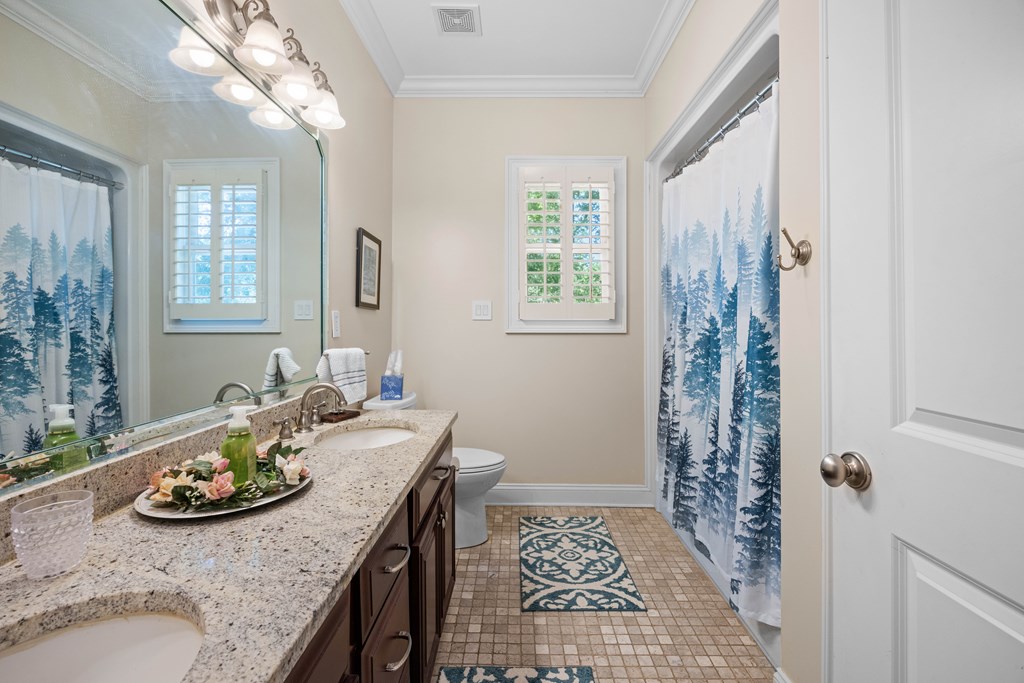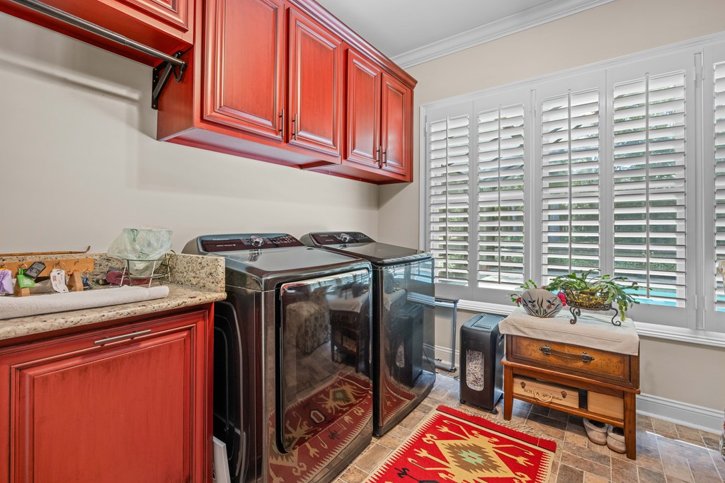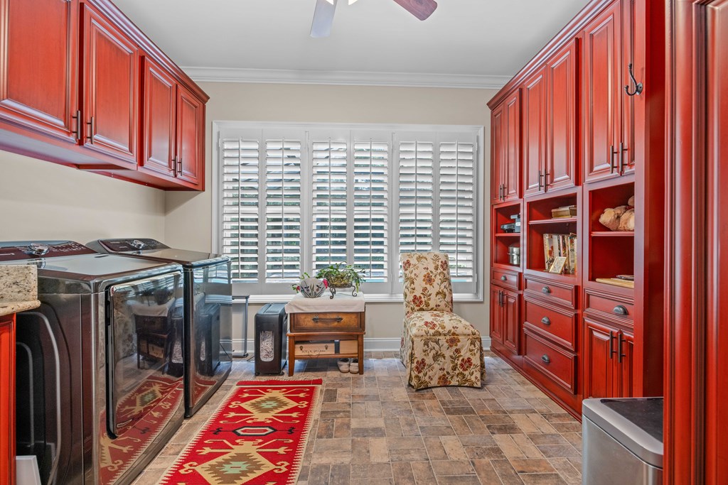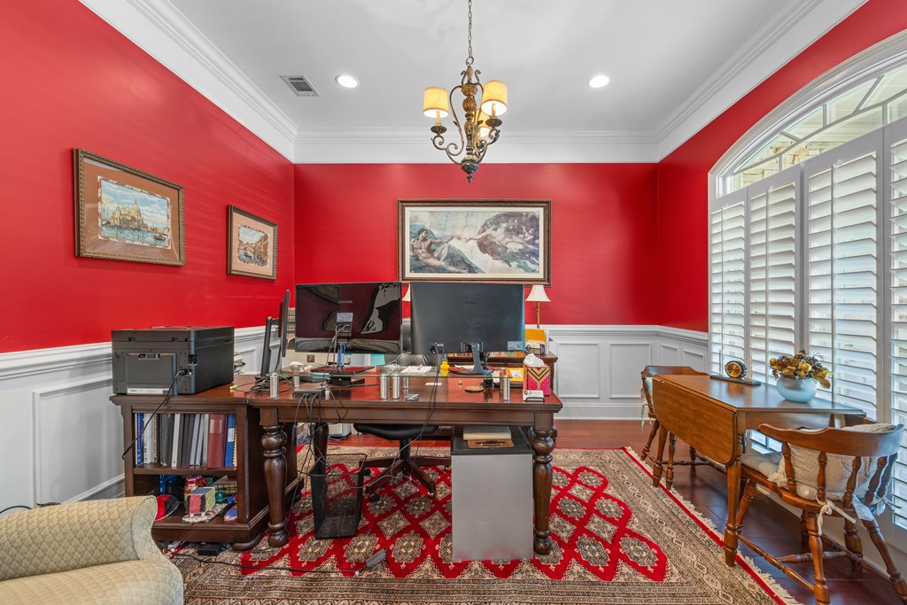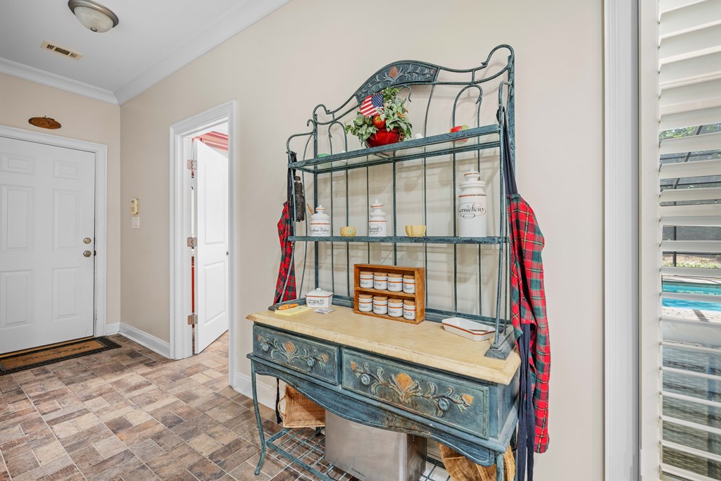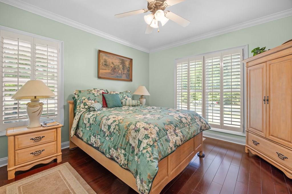Discover a rare opportunity to own a truly exceptional all-brick home in Kinderlou Forest, South Georgia's premier golf and lifestyle community. Showcasing masterful masonry and architectural detail that is increasingly hard to find, this residence offers a level of craftsmanship and character that sets it apart. From the moment you arrive, you're welcomed by a grand circular drive, a spacious, beautifully landscaped lot with mature plantings, and a stately brick fence that enhances both curb appeal and privacy. A generous three-car garage and meticulously maintained exterior reflect the pride of ownership evident throughout the property. Inside, rich hardwood floors, elegant finishes, and thoughtfully curated pops of color create a warm yet sophisticated atmosphere. The home's layout offers both comfort and functionality, ideal for everyday living and entertaining alike. Step into the backyard and experience a true private retreat - an inviting patio space that feels like an escape from the everyday. Whether hosting guests or enjoying a quiet afternoon, the setting is serene and shaded. The saltwater pool and hot tub, complemented by a newly installed pool enclosure, provide the perfect centerpiece, surrounded by fragrant seasonal and perennial gardens. Kinderlou Forest is a 24-gated community that features championship private golf, dining, pickleball and tennis courts, two work out facilities, lake and river access, walking trails, and much more!