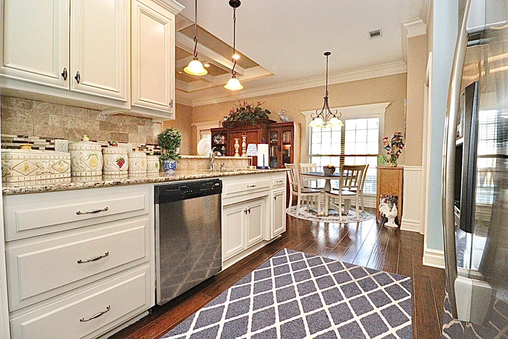 Charming and extremely well maintained 4BR/2BA home in coveted Grove Pointe SD! Starting with weeping mortar brick details and a tiled front porch entry and new roof... welcome to this gorgeous design! Hand scraped hard wood floors throughout main areas, new carpet in BRs and tile in both baths. Granite counters, newly painted kitchen cabinets and SS appliances. Glassed in sun room. Fenced back yard with a shed/workshop and open patio in back. 3D virtual tour available!