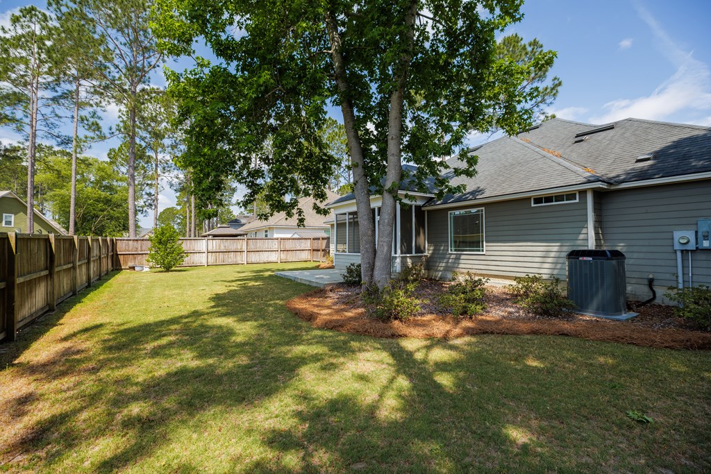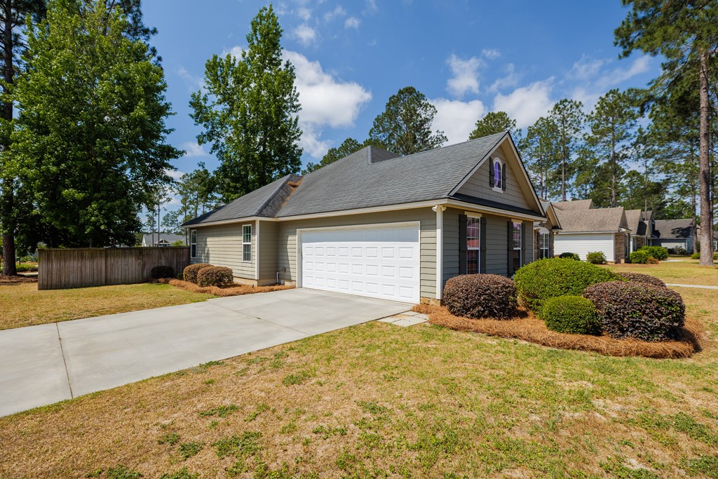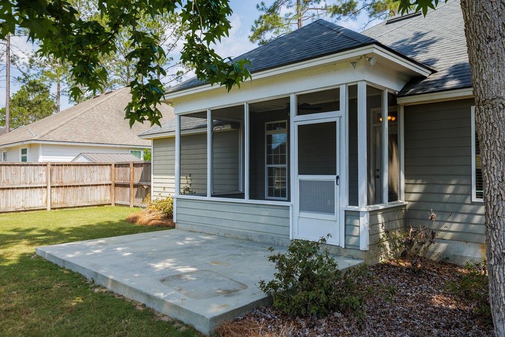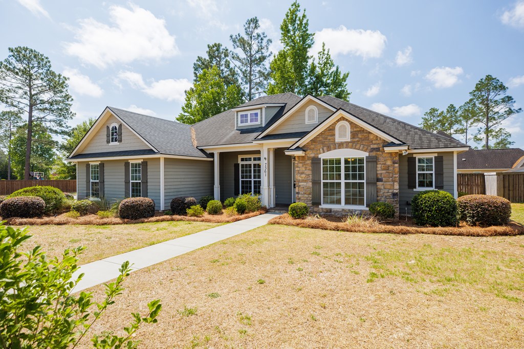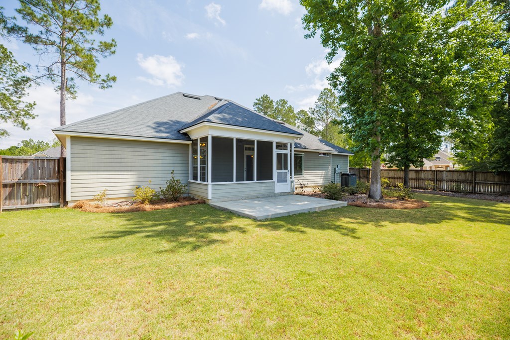 Welcome Home to 7361 Wind Chase Drive! This beautiful 4BR/3BA home is located on a corner-lot in Hahira's highly desirable Creekside West Subdivision. The heart of the home features a great semi-open floor plan designed for easy living. The chef-inspired kitchen is fully equipped with granite countertops, stainless steel appliances, a stylish tile backsplash, and double pantries for maximum storage. It flows seamlessly into the living area, which is accented by elegant tray ceilings. For formal occasions, the dining room is finished with classic wainscoting. The split-plan layout offers a private primary suite featuring tray ceilings and a spacious bath with a garden tub, tiled walk-in shower, and a large walk-in closet. A dedicated guest suite provides the perfect setup for visitors or extended family. Two additional guest rooms feature spacious closets and easy access to the third full bath. Enjoy the outdoors from the screened-in back porch and extended patio, overlooking a fully fenced backyard. Additional features include a Wi-Fi-enabled thermostat, irrigation system, security system, and an oversized garage with a utility room. Located in a golf-cart-friendly neighborhood, residents enjoy access to community pools, a fishing pond, and a playground, all while being zoned for highly-rated schools. Schedule a tour today, this property won't last long!