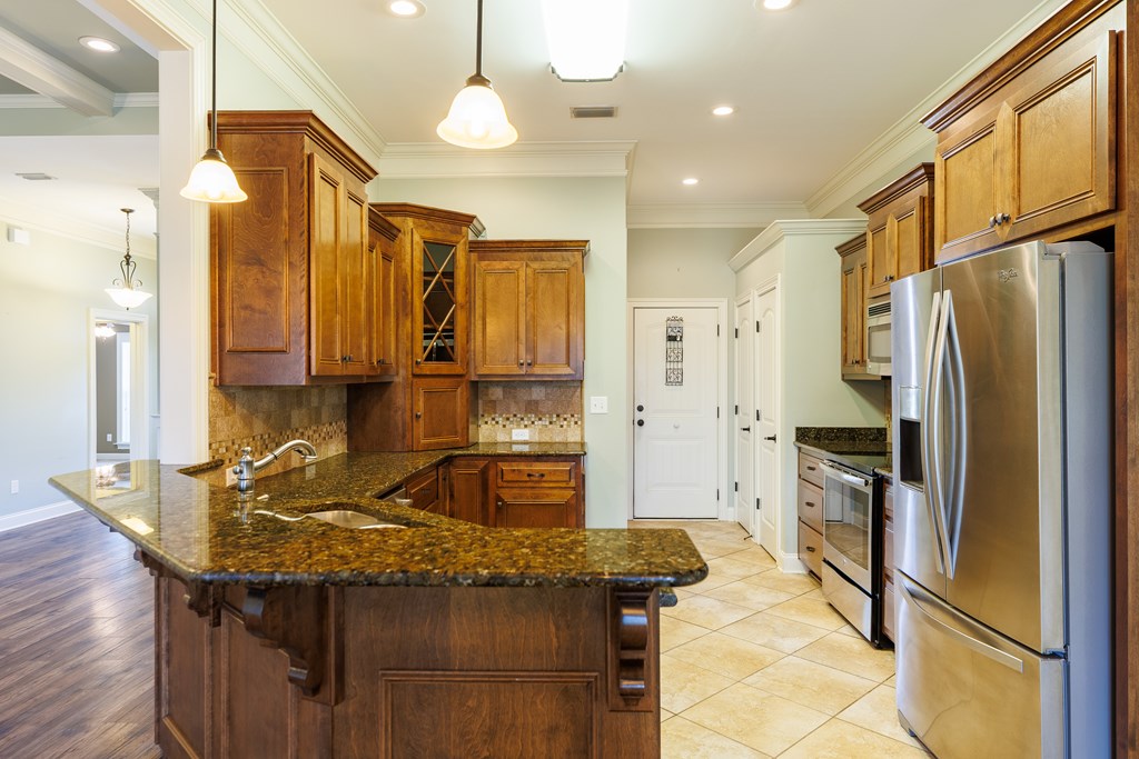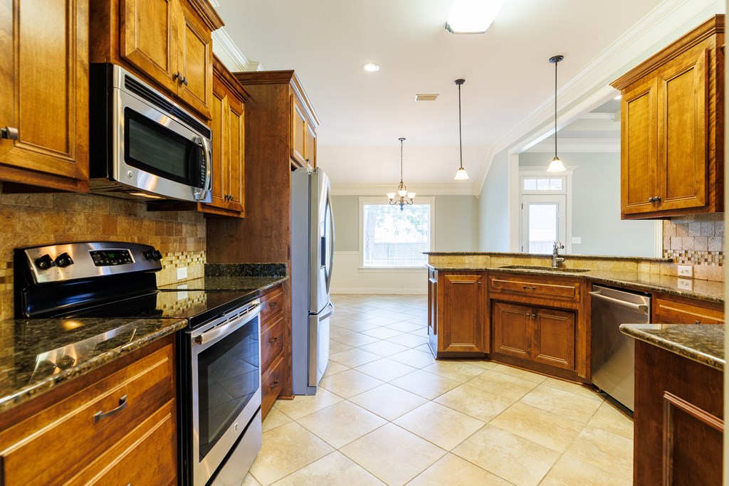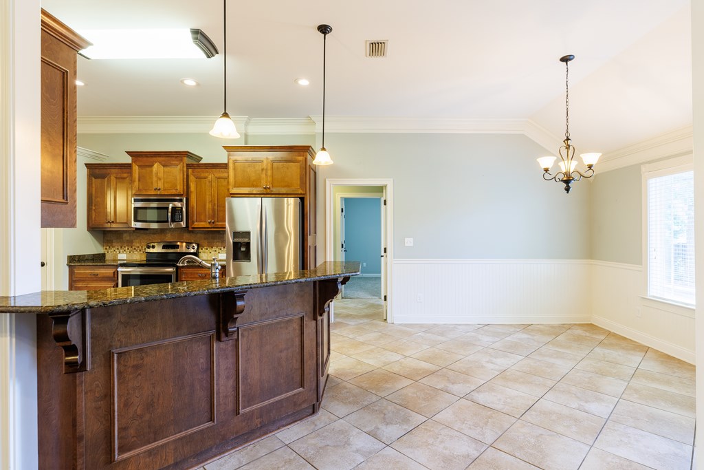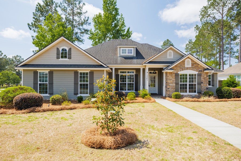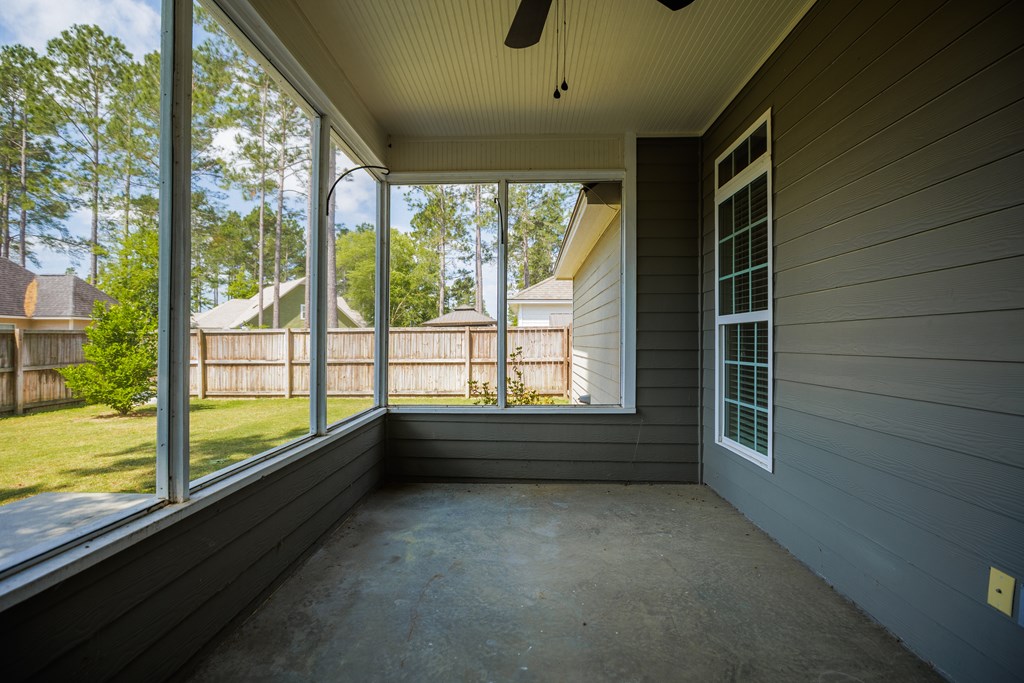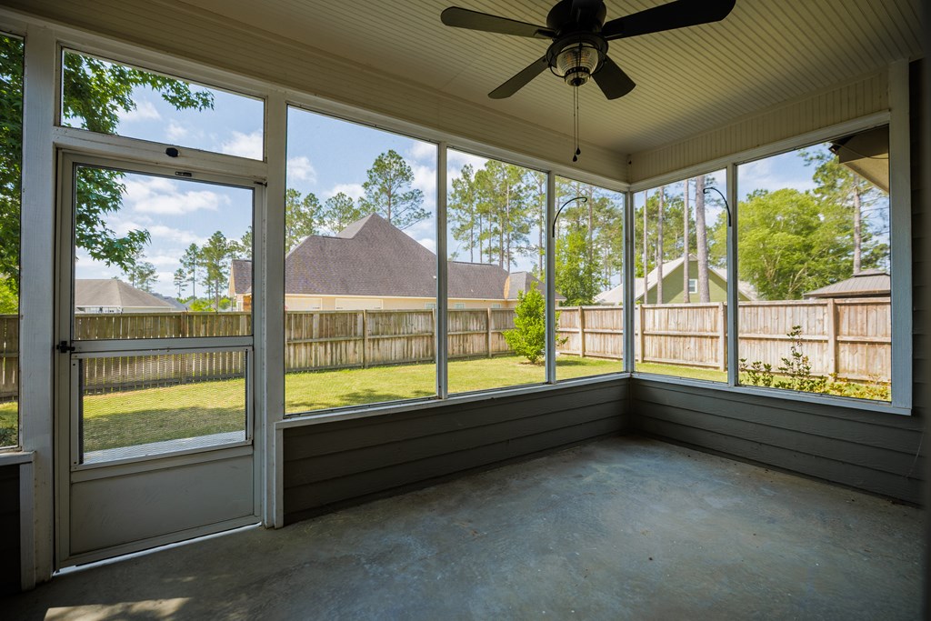 Welcome Home to 7361 Wind Chase Drive! This beautiful 4BR/3BA home is located on a corner-lot in Hahira's highly desirable Creekside West Subdivision. The heart of the home features a great semi-open floor plan designed for easy living. The chef-inspired kitchen is fully equipped with granite countertops, stainless steel appliances, a stylish tile backsplash, and double pantries for maximum storage. It flows seamlessly into the living area, which is accented by elegant tray ceilings. For formal occasions, the dining room is finished with classic wainscoting. The split-plan layout offers a private primary suite featuring tray ceilings and a spacious bath with a garden tub, tiled walk-in shower, and a large walk-in closet. A dedicated guest suite provides the perfect setup for visitors or extended family. Two additional guest rooms feature spacious closets and easy access to the third full bath. Enjoy the outdoors from the screened-in back porch and extended patio, overlooking a fully fenced backyard. Additional features include a Wi-Fi-enabled thermostat, irrigation system, security system, and an oversized garage with a utility room. Located in a golf-cart-friendly neighborhood, residents enjoy access to community pools, a fishing pond, and a playground, all while being zoned for highly-rated schools. Schedule a tour today, this property won't last long!