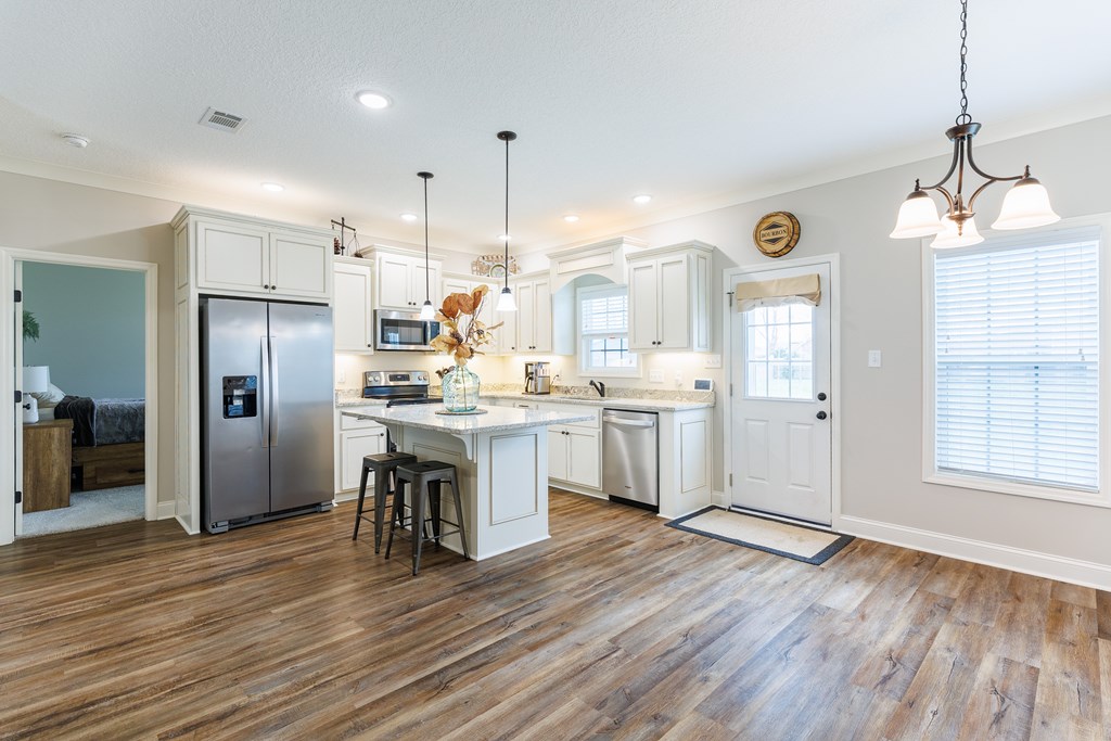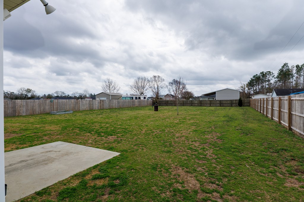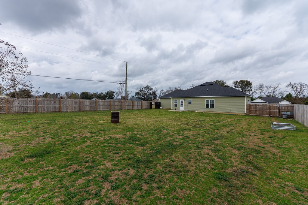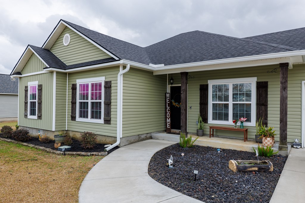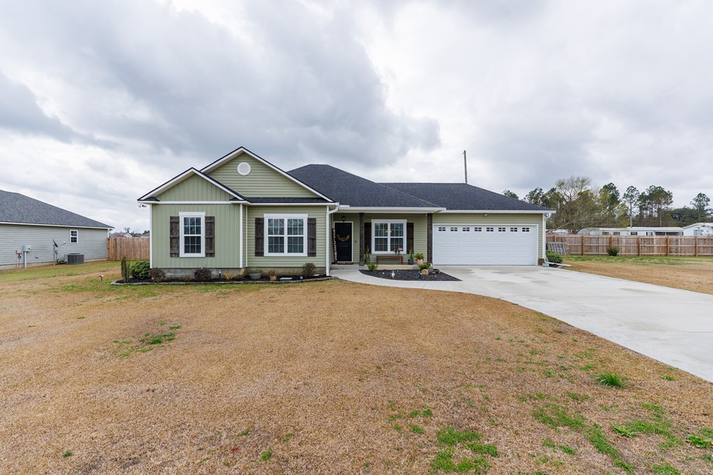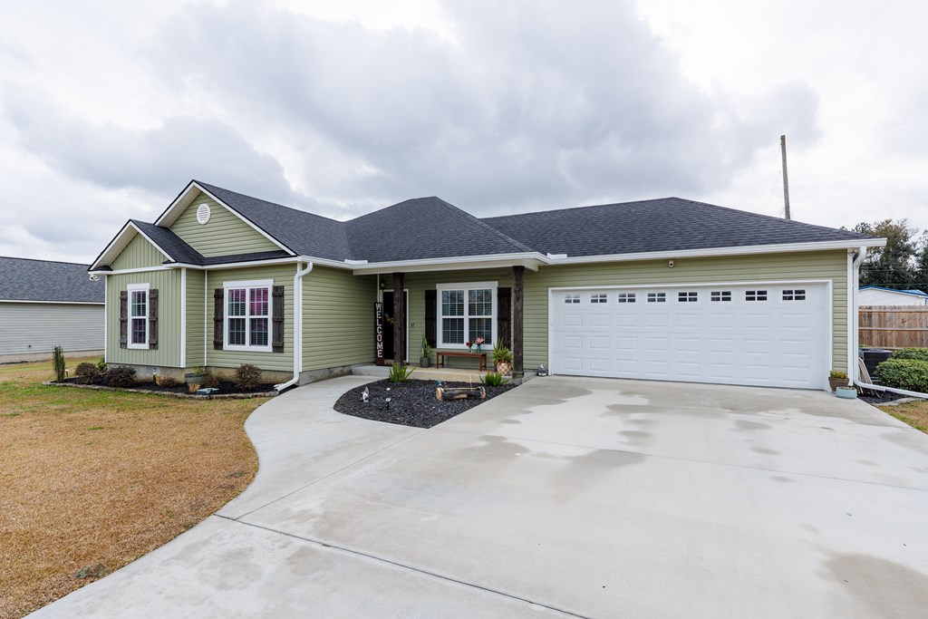Welcome home to North Moody Subdivision! Situated on over half an acre, this beautiful 4 bedroom, 2 bathroom home offers the perfect blend of space, style, and convenience, just a short 10-minute drive to Moody Air Force Base. From the moment you arrive, you'll love the charming curb appeal featuring vinyl siding, a full gutter system, a two-car garage, and a covered front porch accented with wood columns and classic shutters. Step inside to an inviting open floorplan that immediately welcomes you with abundant natural light, recessed lighting, a tray ceiling, and durable LVP flooring flowing throughout the main living areas. The spacious living room opens seamlessly into the dining area and kitchen, creating an ideal layout for entertaining and everyday living. The kitchen is a standout with beautiful granite countertops, under-cabinet lighting, stainless steel appliances, stylish cabinetry, and a large island perfect for barstool seating and gathering with family and friends. Tucked privately at the back of the home, the primary suite is filled with natural light and features a charming barn-style door leading into the spa-like primary bathroom complete with dual sinks, a walk-in closet, separate shower, and a beautifully tiled soaking tub bathed in natural light. On the front side of the home, you'll find three generously sized guest bedrooms and a well-appointed secondary bathroom, offering flexibility for family, guests, or a home office. Step outside to enjoy the fully fenced .53-acre lot, an ideal space to relax, entertain, or simply enjoy the extra room to spread out. This North Moody gem truly combines comfort, functionality, and location all in one. This home is USDA eligible and has a termite bond!