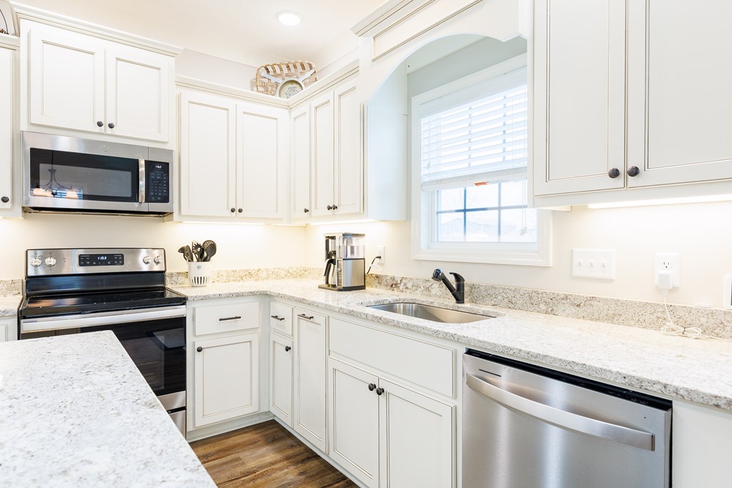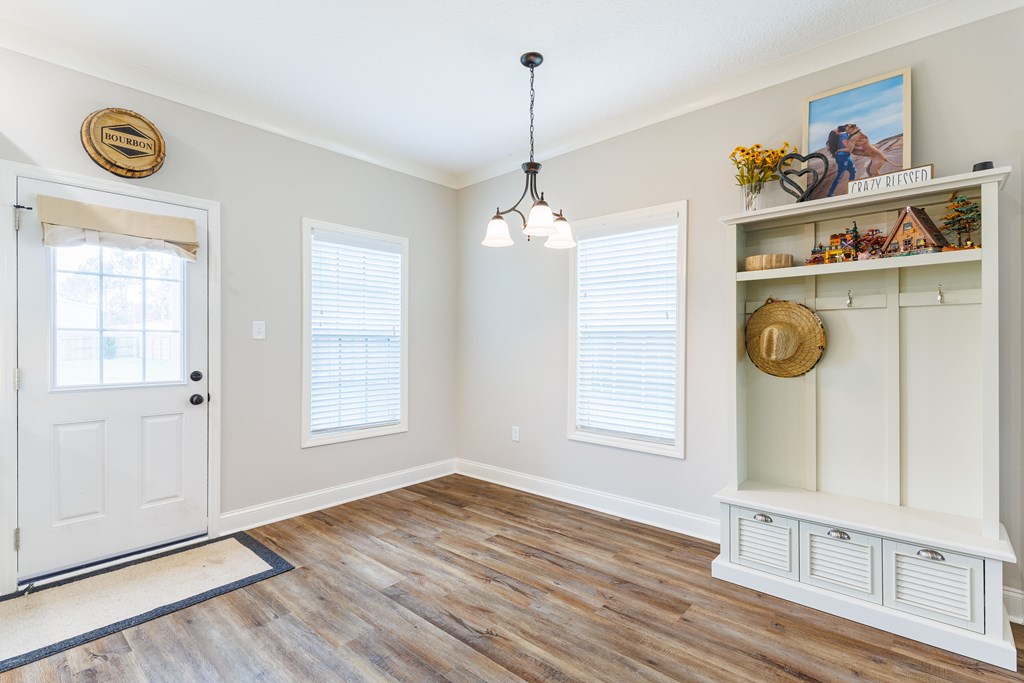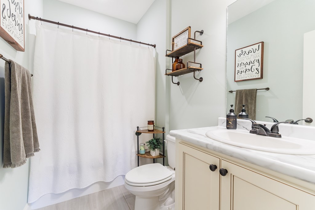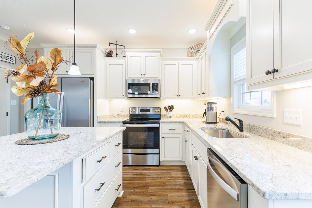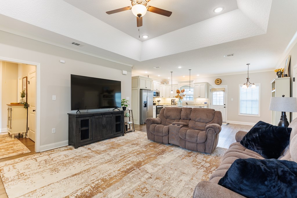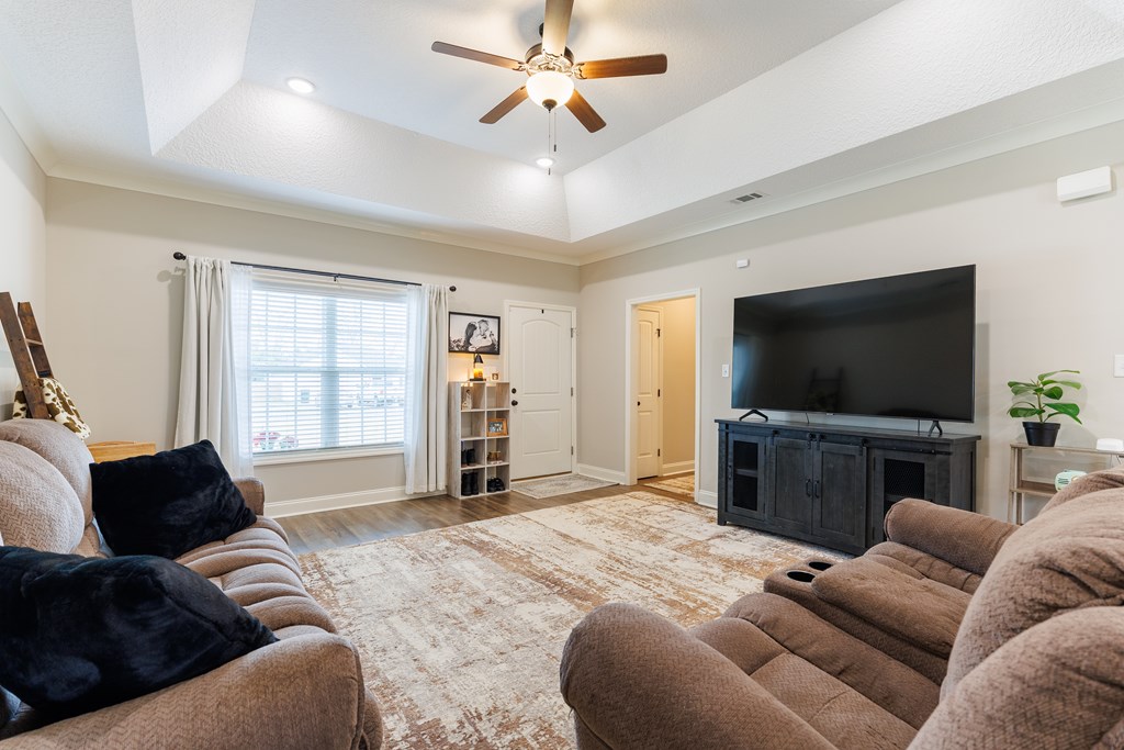 Welcome home to North Moody Subdivision! Situated on over half an acre, this beautiful 4 bedroom, 2 bathroom home offers the perfect blend of space, style, and convenience, just a short 10-minute drive to Moody Air Force Base. From the moment you arrive, you'll love the charming curb appeal featuring vinyl siding, a full gutter system, a two-car garage, and a covered front porch accented with wood columns and classic shutters. Step inside to an inviting open floorplan that immediately welcomes you with abundant natural light, recessed lighting, a tray ceiling, and durable LVP flooring flowing throughout the main living areas. The spacious living room opens seamlessly into the dining area and kitchen, creating an ideal layout for entertaining and everyday living. The kitchen is a standout with beautiful granite countertops, under-cabinet lighting, stainless steel appliances, stylish cabinetry, and a large island perfect for barstool seating and gathering with family and friends. Tucked privately at the back of the home, the primary suite is filled with natural light and features a charming barn-style door leading into the spa-like primary bathroom complete with dual sinks, a walk-in closet, separate shower, and a beautifully tiled soaking tub bathed in natural light. On the front side of the home, you'll find three generously sized guest bedrooms and a well-appointed secondary bathroom, offering flexibility for family, guests, or a home office. Step outside to enjoy the fully fenced .53-acre lot, an ideal space to relax, entertain, or simply enjoy the extra room to spread out. This North Moody gem truly combines comfort, functionality, and location all in one. This home is USDA eligible and has a termite bond!