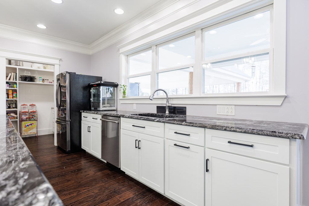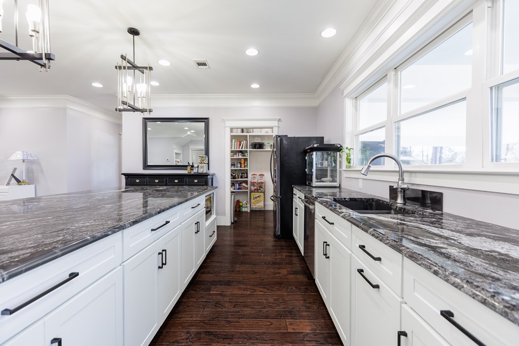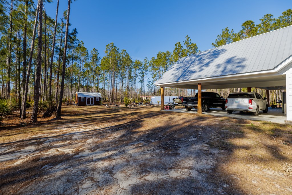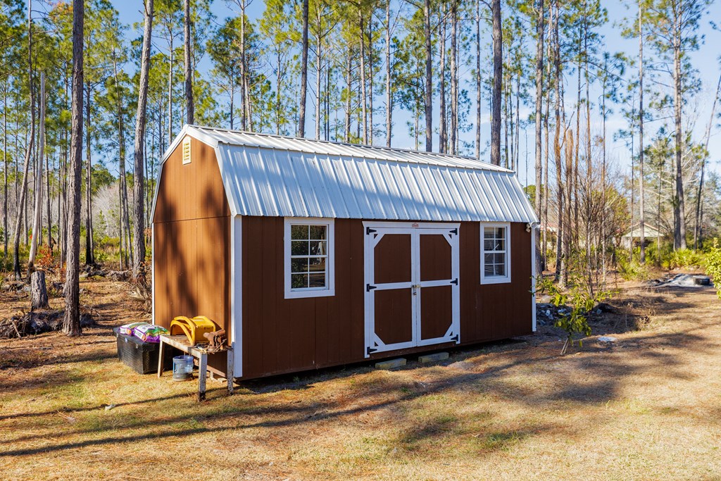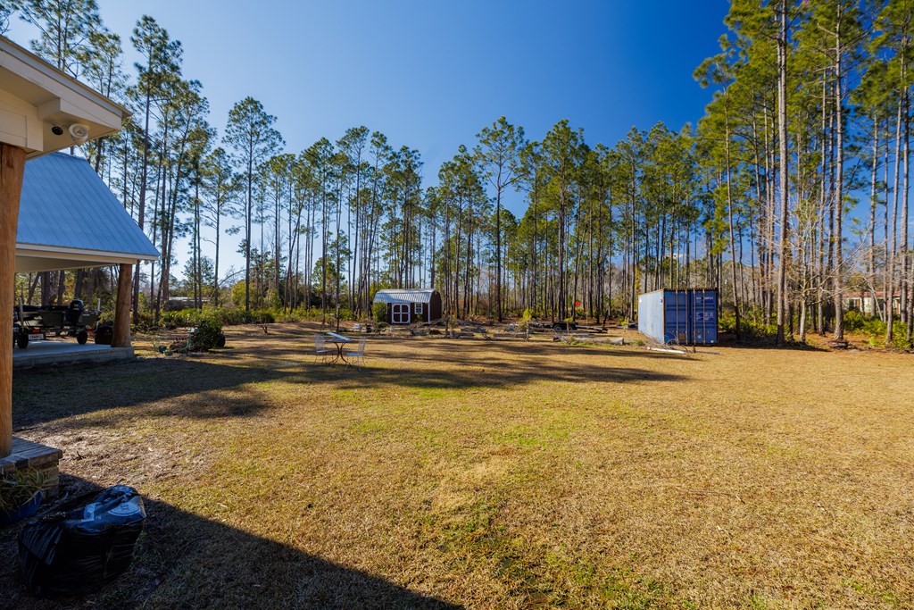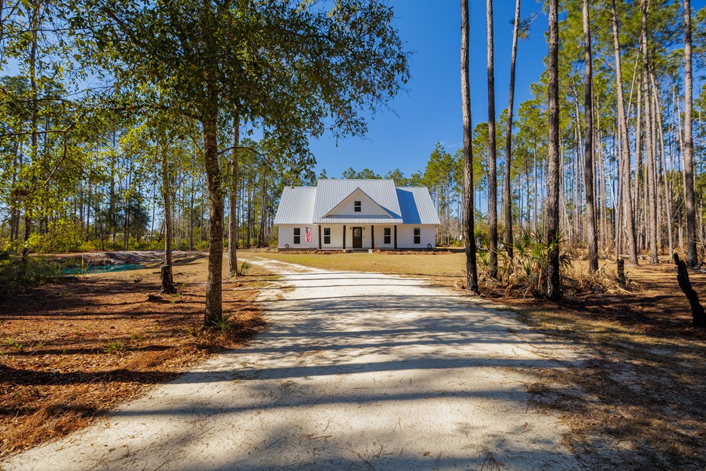 Your farmhouse dream awaits you! Take a look at this beautiful & private 3/2 with office, stocked pond, 16X8 shed, and 4 acres of land! This home features an open floor plan, granite counter tops, an abundance of natural light, large walk-in pantry, large island w/ storage, and gas stove/water heater. The master features a large, tiled shower with an oversized custom walk-in closet with abundant shelving, dual hanging space, built-in vanity, storage cabinetry, and in-closet washer dryer designed for convenience. An additional bedroom, bathroom, and office is located downstairs with the 3rd large 42x14 bedroom upstairs w/ walk-in closet and attic storage. A large 32x26-covered porch is adorned with cypress posts and doubles for additional attic storage. **Conex will be moved