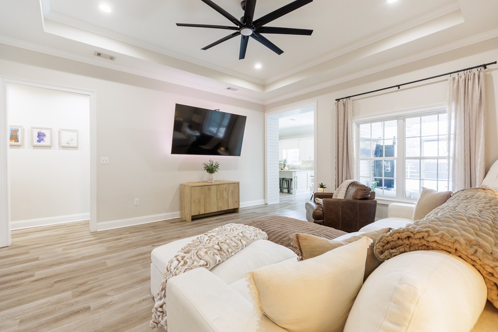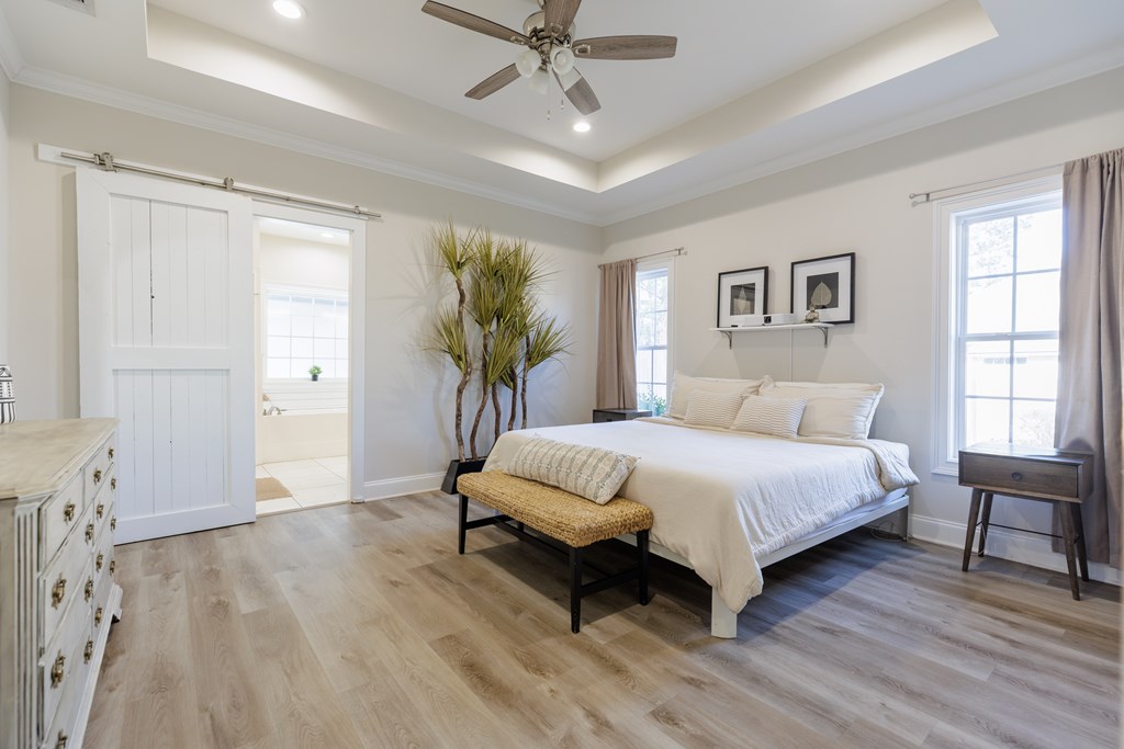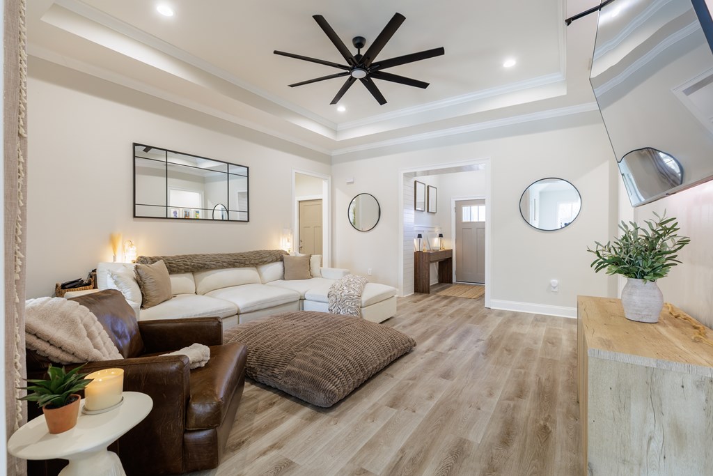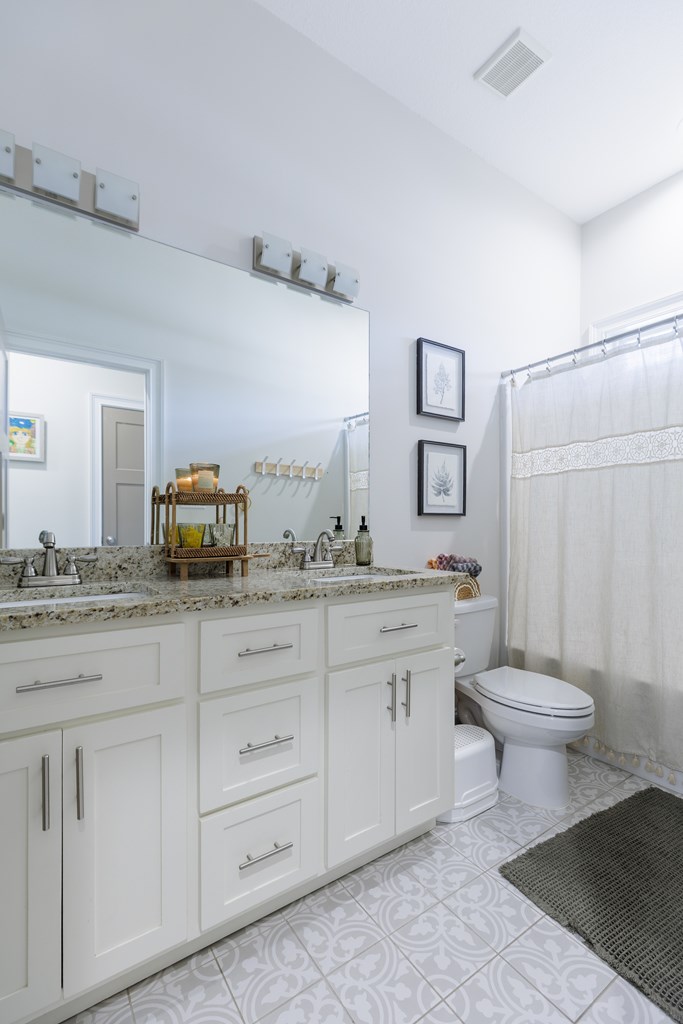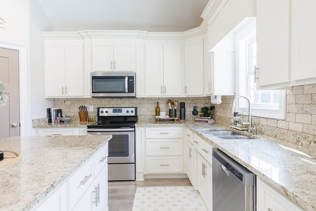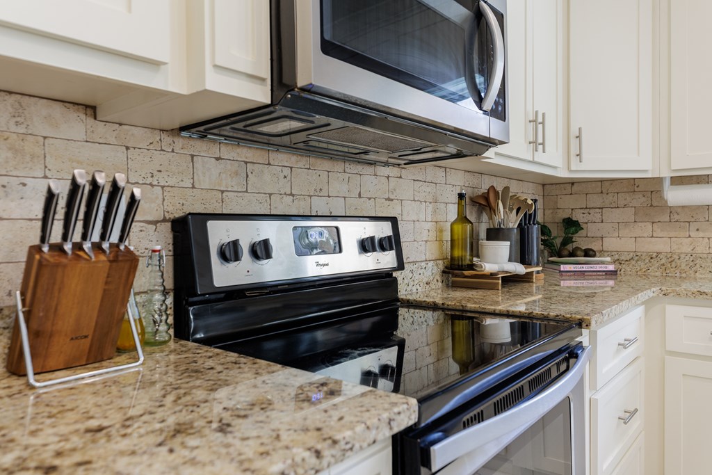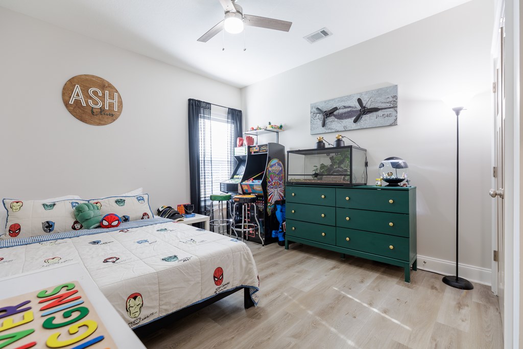 Welcome to Gramercy Subdivision, no HOA and just 7 minutes to Moody AFB. This stunning 4-bed, 2-bath home offers standout upgrades inside and out, including a custom-built backyard oasis designed for entertaining. Curb appeal shines with upgraded rock landscaping, a full home gutter system, a two-car garage with EV charger, and a whole-house water filtration system with reverse osmosis drinking fountain in the kitchen. Inside, the foyer features elegant wainscoting and high ceilings that open into a bright, open-concept living space with 11' tray ceilings flowing into the dining area with a large picture window providing abundant natural light. The kitchen is both stylish and functional with granite countertops, tiled backsplash, stainless steel appliances, a large corner pantry, and an oversized island with shiplap detailing. The split floor plan places three guest bedrooms on one side of the home, along with a guest bath offering dual sinks and designer tile, while the private primary suite is situated on the opposite side and includes tray ceilings, a walk-in closet, and sliding barn door leading to the bathroom with granite countertops, dual sinks, tiled shower, shiplap-accented soaking tub, and two additional walk-in closets. Step outside through the 12'x10.5' screened-in patio into your personal retreat featuring a custom saltwater cocktail pool with cool decking on all concrete surfaces, three waterfalls, two bubblers, sun shelf, underwater barstools, built-in umbrella holder, tabletop drink ledge, and multi-color LED lighting controlled from the dining room. Golf enthusiasts will appreciate the 4-hole putting green paired with an extended turf chipping area. Additional outdoor highlights include a 10'x10' metal pergola, concrete fire pit with pavers, grilling area, lush banana tree landscaping, a 12'x8' shed with power, lighting, and metal roof, and an 8-foot wood privacy fence with side gate. This home blends comfort, functionality, and resort-style living.